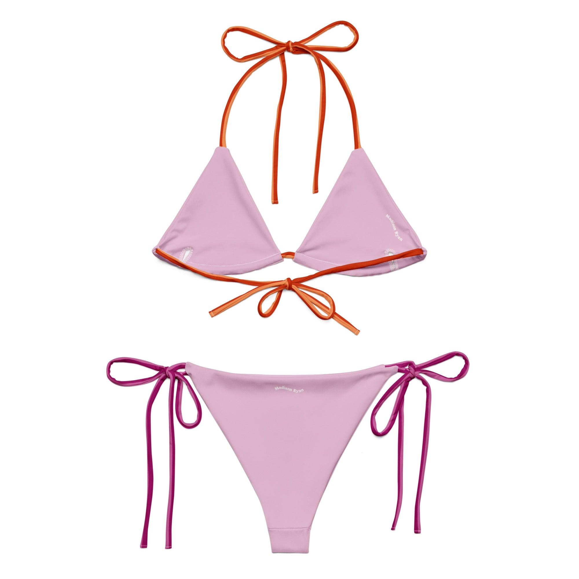 Disclaimer: To make your All-Over Print Recycled String Bikini last longer, thoroughly rinse it off after each use and get rid of any chlorine/salt residue.